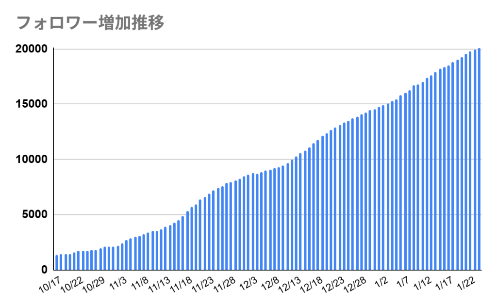 毎日の記録を付け始めたのが、フォロワー1,348人の時点からなので、
